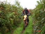 Lane number 201-001 produced a herd of cows, all with their backs turned towards us completely blocking the lane. Bonny now took charge, lined us up on the side of the track thus giving them room to pass us when she had turned them round, and marched into their midst. Fred said 'Christ, where's she gone?', because Bonny is only little and cows are very big and we couldn't see the top of her helmet. The cows, apparently queuing up to stampede through the gate and be first into the dry milking shed completely ignored her, and us, so we about turned and retraced our steps.