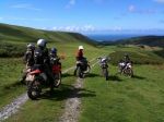 Great evening in the local community centre with hot food and like minded company as we listened to Tamsin Jones presentation on her incredible Dakar feat followed by a glorious 6 hour sunny, yes sunny! days trail riding on Sunday (Jenny (leading), me, Bonnie, Lyn, Sue, Clare ) all sorts of terrain:- overgrown old fern tracks (beautifully soft to land in), mentalist slippy rocky downhills (not so beautiful to land on) and fantastic long flowing mountain tracks with take your breath away scenery (all with plentiful Welsh water).
