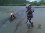 So Ian, Kev, Gary and Myself found ourselves on an unexpected evening ride. It was low tide so we managed to have a play in the mud ourselves. The funny thing was after at least 7 high tides we could still see a big pit where Del had got stuck! Needless to say we gave the pit a wide berth.